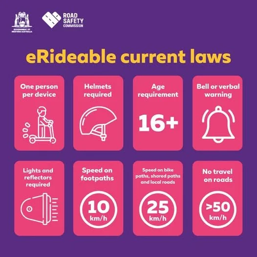 Under WA road safety laws, only people aged 16 and over are permitted to use eRideables or eBikes with the motor engaged.